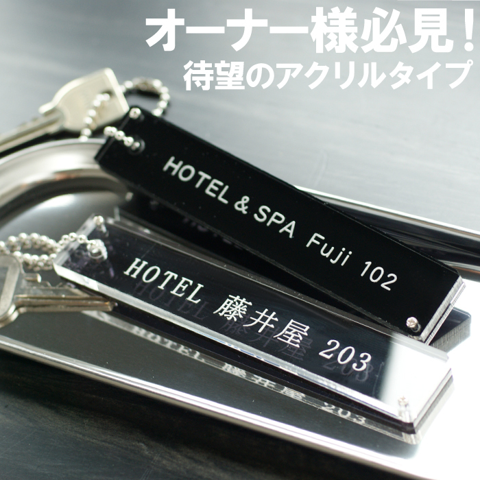 【名入れアクリル ルームキーホルダー ボールチェーン付】 ホテル、旅館、民宿、ペンションに♪ 開店祝いや転居・新築祝いのマイホーム用に! 透明感が魅力のアクリルタイプのルームキーは 5mm+3mmの2重構造で耐久性も◎ ホテル・旅館・民宿・ペンション・コテージなどでお客様のおもてなしに、 引越し祝い、結婚祝いのプレゼント、 新築祝いのおもしろギフトにもおススメ★ 名入れプレゼントで世界に一つの贈り物! | |