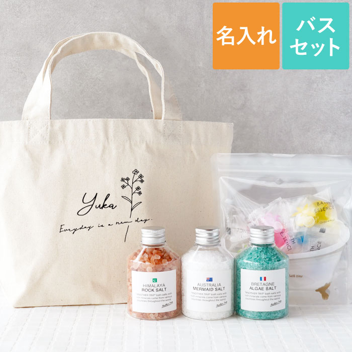 | 【 名入れOK! バスソルト トートバッグ セット 】 ■最近、疲れがとれにくい・・・そんな方へ♪ バスソルトはパキスタン、オーストラリア、フランスの3国からご用意しました。 7つの香りが楽しめるバスエッセンスはその日の気分によってお選びください♪ 今日は帰ったらあの香りにしよう♪なんて心が弾みます ■バスソルトをお風呂に入れるとこんな効果が!! ・塩が温浴効果を助け、体の芯まで暖まります。 ・肌表面のタンパク質と結合して膜を形成し、体の熱を逃がさないので、湯冷めしにくくなります。 ・入浴による汗だしを助け、ミネラルが肌を引き締める効果があるそうです ■バスエッセンスで贅沢気分を味う◎ ・7つの香りが楽しめます。 ・その日の気分によって香りをチョイス。香りに癒され心身ともにリラックス♪ 名入れで、世界にひとつのプレゼント! | |