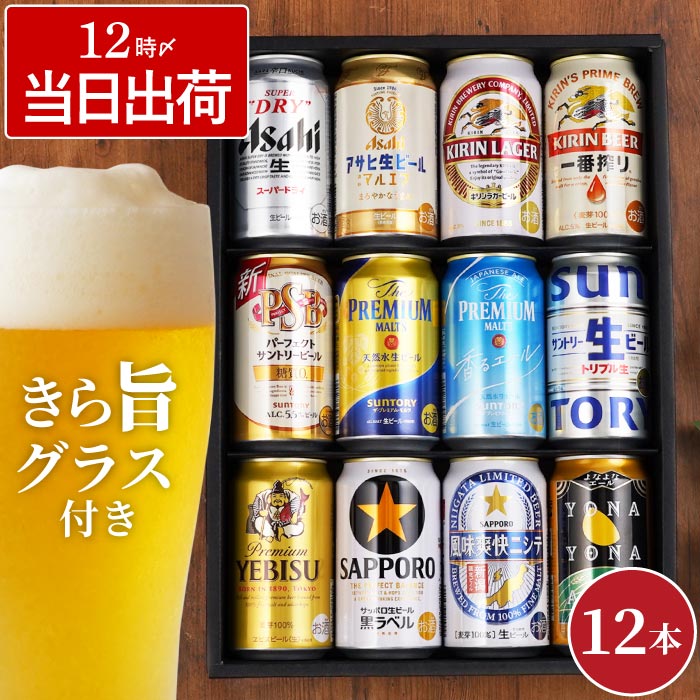 【ビール12本&きらめくグラスセット 送料無料 】 酒屋さんが本気で選んだ、泡うまビールグラスと国産ビール12本のギフトセット! 週に一度は休肝日のお父さんも2週間楽しめる飲み比べセット 毎日の晩酌を楽しみにしているお父さんへの贈り物に、ビール好きの母への日頃の感謝を込めて、お酒大好きな友人への誕生日プレゼントにも◎ | |