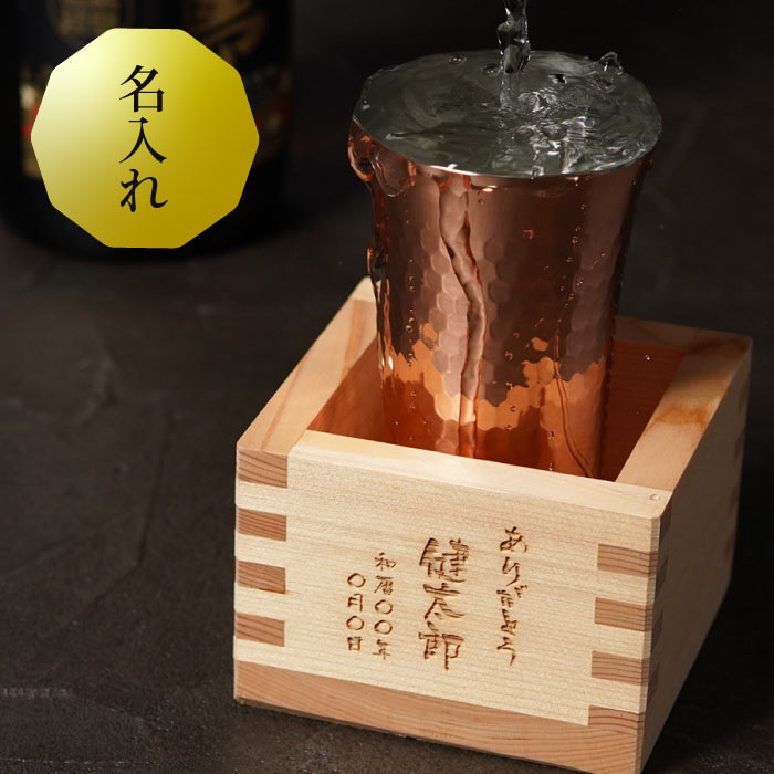 | 【純銅鎚目一口ビアカップと枡のこぼれ酒セット】 「ものづくり」の町、新潟燕製の銅製一口ビアグラスと枡でこぼれ酒を楽しめるセット。 枡にはメッセージ、お名前を彫刻してさらにプレミアムに。 楽しみ方 [1]枡にグラスを入れて、家でも贅沢にこぼれ酒。 [2]銅製グラスでいつものビールもよりおいしく。 [3]枡でヒノキの香りとともに日本酒を。 [4]いつでもみえる場所に飾って目でも楽しめる。 世界に通用する超一流の技術を持った職人たちが、一つひとつ細部までこだわり、手仕事で仕上げた逸品! 鉄の5倍、ステンレスの25倍もの熱伝導率の良さを誇る銅製 銅カップを使用して冷たい飲み物を飲むと、口当たりや手に伝わる清涼感は格別です。 また、銅には微量金属作用(銅イオン作用)という、 水に混ざるだけで驚異的な殺菌作用を発揮する性質があります。 この銅イオンの働きが微生物の発生を防ぎ、 銅食器を衛生的に保ちます。 握った瞬間から違いを実感できます。 洗練されたデザインで銅ビアカップの素晴らしさを実感してください。 | |