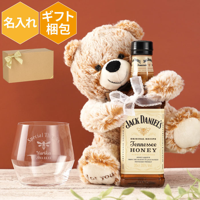 | 【抱きつきベアとジャックダニエルテネシーハニー350ml&ハニカムグラスセット】 ハチの巣をイメージした六角形のグラスとジャックダニエルテネシーハニーの入ったボトルをぎゅっと抱きしめた、 ふんわり柔らかいくまのぬいぐるみ♪ あなたと一緒に「ありがとう」を届けてくれます お酒は、はちみつの豊かな風味にミックスナッツのような香ばしい香り、 上品な甘みのある飲みやすさ抜群のリキュールです 甘いお酒が好きな方や、お酒が苦手な方にもおすすめ♪ | |