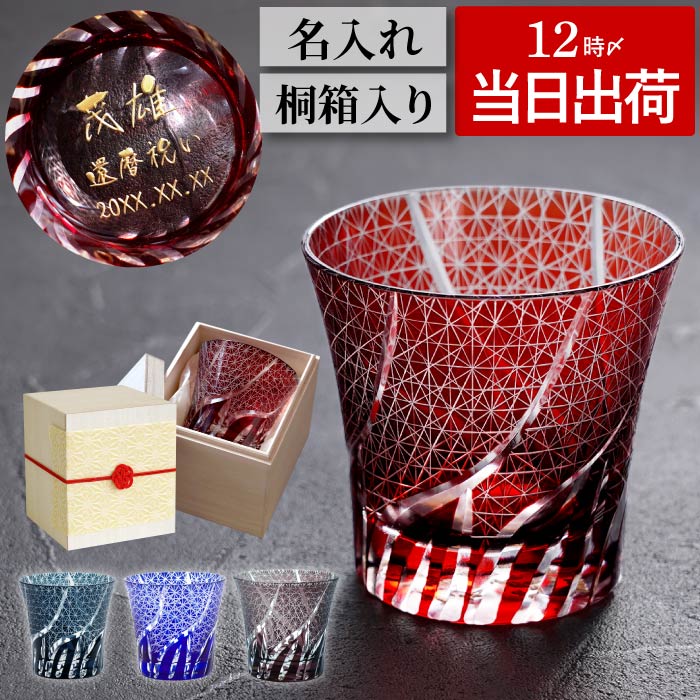 | 【切子グラス 菊つなぎ模様 単品】 華やかな光の屈折とシンプルな金名入れが目を引く切子グラスは、日頃の感謝の気持ちを伝える特別なプレゼントにおすすめです ゴールドの名入れはグラスの底に彫刻されているので、飲みほした後にお名前とメッセージが見えるのが嬉しいポイントです ひとつひとつ手作りのぬくもり感じる切子グラスは光の加減で様々な表情をお楽しみいただけます そんな名入れ切子グラスを贈り物にピッタリな桐箱に入れました 封はされていないので渡す前に彫刻を確認できる安心ラッピングです 名入れなのに翌営発送いたします 手提げも付いているので、届いてすぐお渡しいただけます 華やかな金名入れ切子グラスは お酒好きなお父さんやお母さんに、父の日・母の日ギフトとして テーブルを華やかにしてくれるので こだわりのおじいちゃん、おばあちゃんへの敬老の日のプレゼントにもぴったり 男性、女性を問わず、お誕生日のプレゼントや記念日の贈り物にも 名入れプレゼントで世界に一つの贈り物に | |