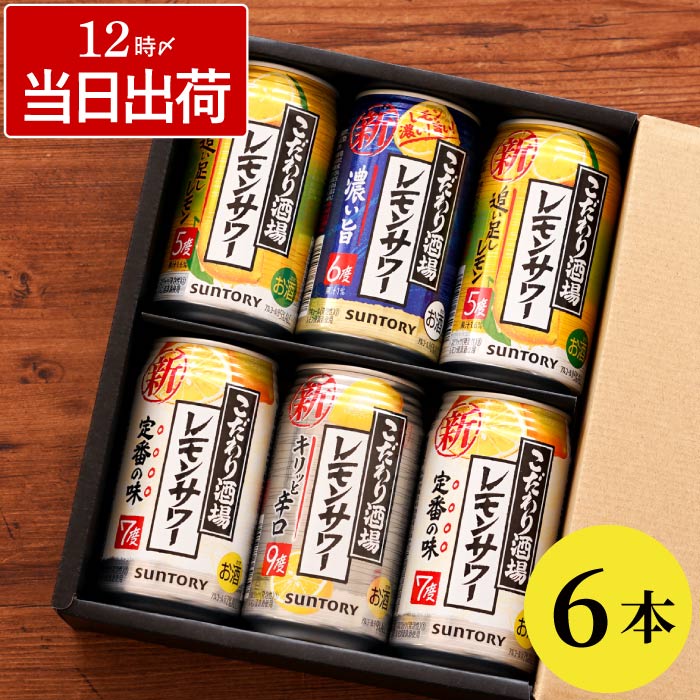 | 仕様 / サイズ | [レモンサワー](350ml×6本) ■内容: サントリー こだわり酒場 レモンサワー 定番(7%)×2 サントリー こだわり酒場 レモンサワー 追い足しレモン(5%)×2 サントリー こだわり酒場 レモンサワー キリッと辛口(9%)×1 サントリー こだわり酒場 レモンサワー 濃い旨(6%)×1 |