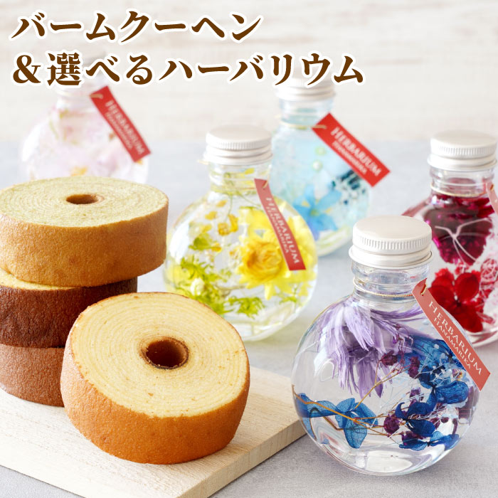 | 【バームクーヘン4個+丸型ハーバリウムセット】 楽天で「1位獲得」実績ありの下町バームクーヘンと、お花屋さんこだわりのハーバリウムがセットになった嬉しいギフト バームクーヘンは常温で30日もつのですぐにお渡しができなくても安心♪ 個包装で美味しさ長持ち、ゆっくりお楽しみいただけます セット梱包だからボリューム感たっぷり! 専用のボックスにお入れし、ギフトバッグをつけてお届けします | |