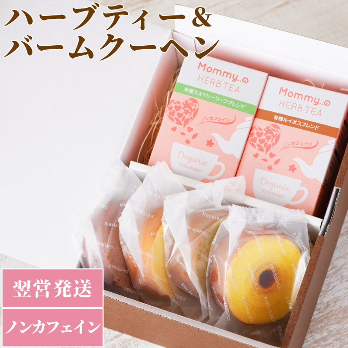 | 【ノンカフェインハーブティー2種+バームクーヘン4個ギフトセット】 妊娠初期〜産後まで、食事の時もリラックスのティータイムにも飲みやすいルイボスティー、 ヨーロッパでは「安産のハーブ」とも呼ばれ、 出産準備として飲まれているラズベリーリーフティーの2種類をセットに。 バームクーヘンは縁起の良いお菓子とされ、様々なお祝い事や御礼の贈り物に最適です。 もうすぐママになる方へ、安産祈願の想いを込めて懐妊のお祝いや、 出産祝いとして、頑張ったママへのプレゼントにもおすすめです。 【ハーブティー召し上がり方】 ・ホットの場合 温めたカップにティーバッグを入れ、沸騰させたお湯約180mlを注ぎ、3〜6分間置いてからお召し上がりください。 ・アイスの場合 氷を入れたグラスに、上記の方法で濃いめに出したハーブティーを直接注いでください。 | |