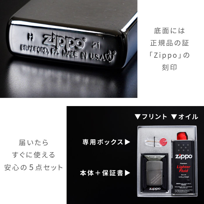 | 【zippo アーマーケース】 世界中の人々に最も愛されているモデルのひとつでもある、クロームサテン仕上げ ボトムにアーマーの頭文字の[A]のマークが刻印 通常のジッポーと比べzippoの厚みが1.5倍 クロームサテン仕上げなので指紋や小さな傷も気にならずにお使いいただけます 高級感があり、重圧なアーマーだから奏でられる開閉音も美しい 耐風性や耐水性に優れているのでアウトドアシーンのキャンプギアとしてもおすすめです ■zippoギフト5点セット zippoライター、zippoオイル小缶、フリント、専用ギフトボックス、保証書でもらったらすぐに使える買い足し不要のギフトセット zippo初心者さんでも安心してお渡しいただけます ■名入れで世界にひとつ お名前、メッセージ、イニシャル、記念日… お好きな文字を彫刻して、大切なあの人へ | |