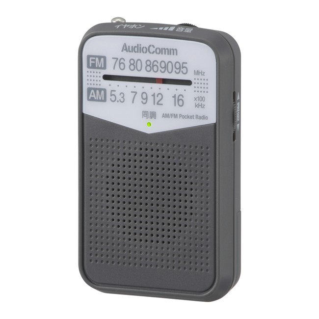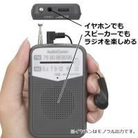 オーム電機 防災ラジオ AudioComm AM/FM ポケットラジオ 2バンド P133 片耳イヤホン付属 ワイドFM 簡単 シンプル RAD-P133N-H 03-7242 ■