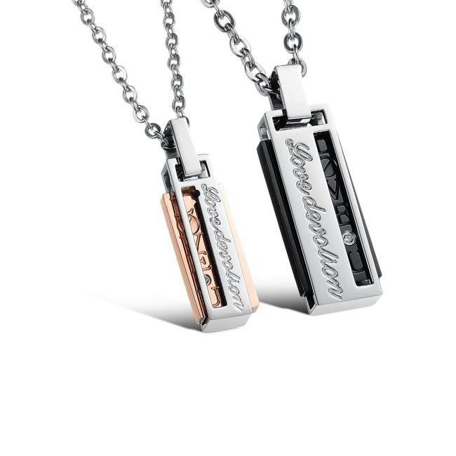 ロゴ入りフレームにメッセージプレートが組み合わさったネックレス。