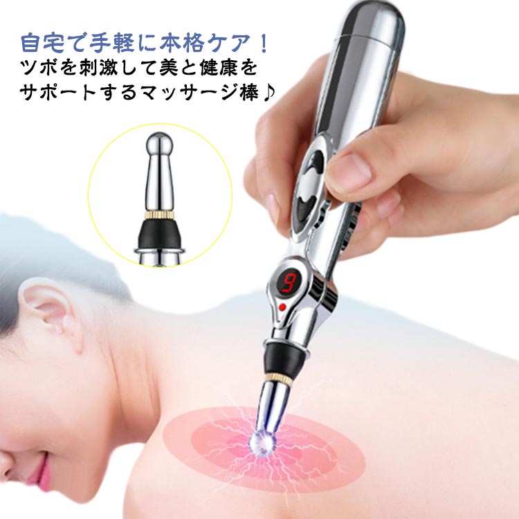 | 自宅で手軽に本格ケア!ツボを刺激して美と健康をサポートするマッサージ棒♪ 9段階の強度調整が可能な電子パルスペンは、肩こり・腰痛・耳周り・フェイスケアまで幅広く対応。物理療法とツボ刺激を融合させた家庭用電子鍼灸筆で、電気のパルスで経絡をやさしく刺激し、・コリの緩和に効果的です。 3種類の交換ヘッド付きで、用途や部位に応じた使い分けが可能。先端を変えることで、美顔・美肌ケアにもぴったり。顔まわりのむくみやたるみにもアプローチでき、リフトアップ効果も期待◎ コードレス&軽量設計で、使いたいときにサッと使えるのも嬉しいポイント。忙しい毎日のスキマ時間に、リラックスとセルフケアを♪ 健康管理、ダイエット、疲労回復、美容に。一家に一本あると便利な、頼れる健康グッズです! | |