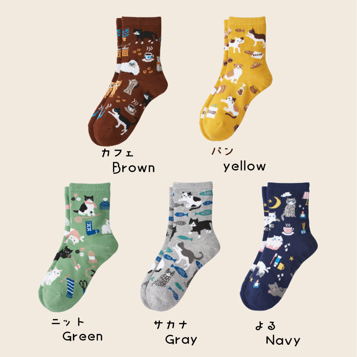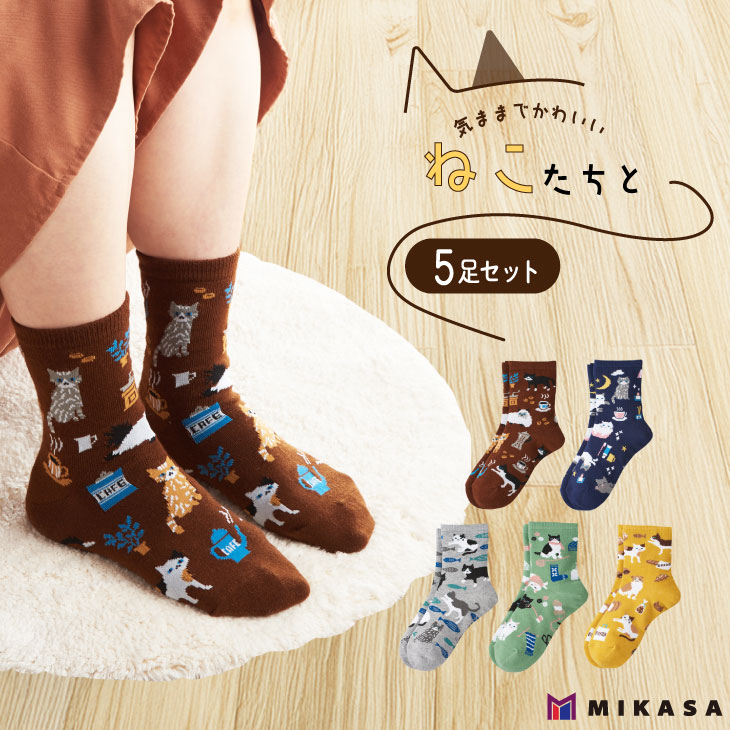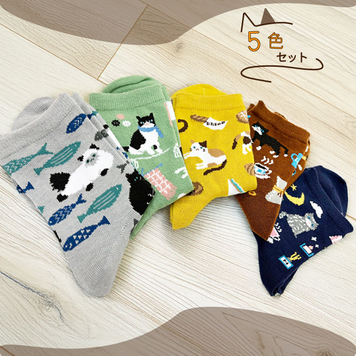 ほっこり猫 靴下 クルー丈 クルー レギュラー レギュラー丈 ソックス 5足セット 5足 5柄 組 口ゴム ゆったり 締め付けない ずれない レディース 婦人 女性 おしゃれ 可愛い かわいい カワイイ ポイント 柄 動物 アニマル アニマル柄 猫 ネコ ねこ ねこ柄 ネコ柄 猫柄 ねこがら 人気 おすすめ 売れ筋 贈り物 プレゼント ギフト ブラウン 茶色 茶 イエロー 黄色 黄 グリーン 緑色 緑 グレー 灰色 灰 ネイビー 紺色 紺 22-25cm 猫好き 猫グッズ ランキング カジュアル 面白い おもしろ お茶目 おちゃめ 癒し カラフル カフェ柄 コーヒー パン ニット キルト パン柄 さかな柄 ニット柄 キルト柄 動物柄 ねこ 白猫 黒猫 キジ猫 三毛猫 まとめ買い かわいい 総柄 靴下セット くつした まとめ オールシーズン 春 夏 秋 冬 通年 通学 通勤 学生 学生 大人 20代 30代 40代 50代 60代 70代 80代 22cm 22.5cm 23cm 23.5cm 24cm 24.5cm 25cm 大人可愛い 秋冬 秋用 冬用 真冬 ねこ靴下 女性用 暖かい 暖色 あったかい 冬ギフト 冷えとり 冷え取り靴下 冷え性対策 防寒 あったか 暖かい 暖かい クリスマス 誕生日