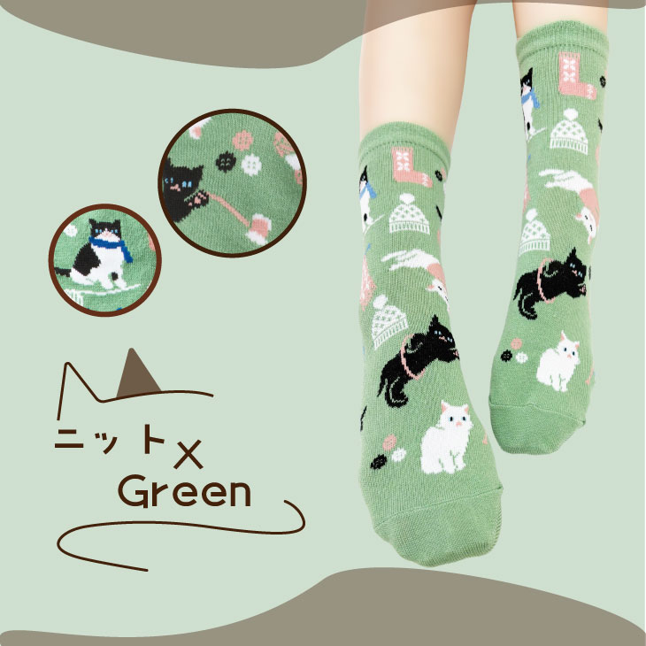 カテゴリ:靴下、ソックス、婦人、レディース、春、夏、秋、冬、通年、オールシーズン、動物、アニマル、にゃんこ、猫、猫柄、かわいい、おしゃれ