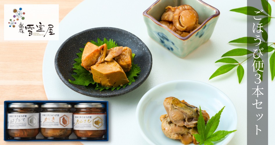 ●【越後雪室屋】ごほうび便3本セット(ごほうび便 あんきも・ごほうび便 ほたて・ごほうび便 かき)N3-17