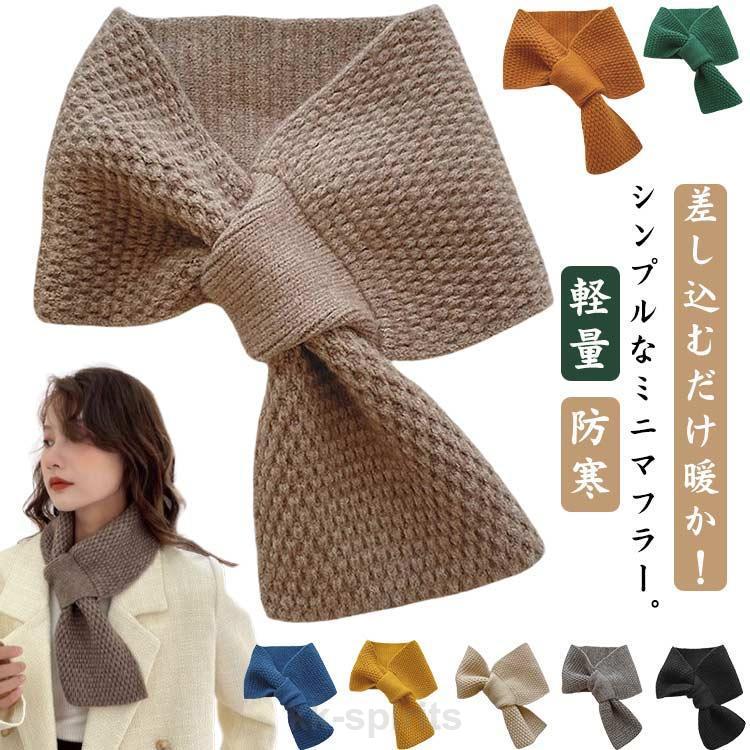 リボン ネックウォーマー かわいい 差し込み ニット 無地 ニットマフラー 差し込み つけ襟 柔らかい スヌード レディース 通すだけ ミニマフラー