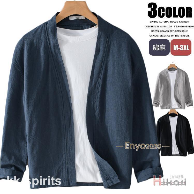 麻 羽織 メンズ カーディガン 長袖 無地 リネンジャケット 綿麻 男性用 浴衣 和服 甚平風 作務衣 冷房対策 花火大会 お祭り