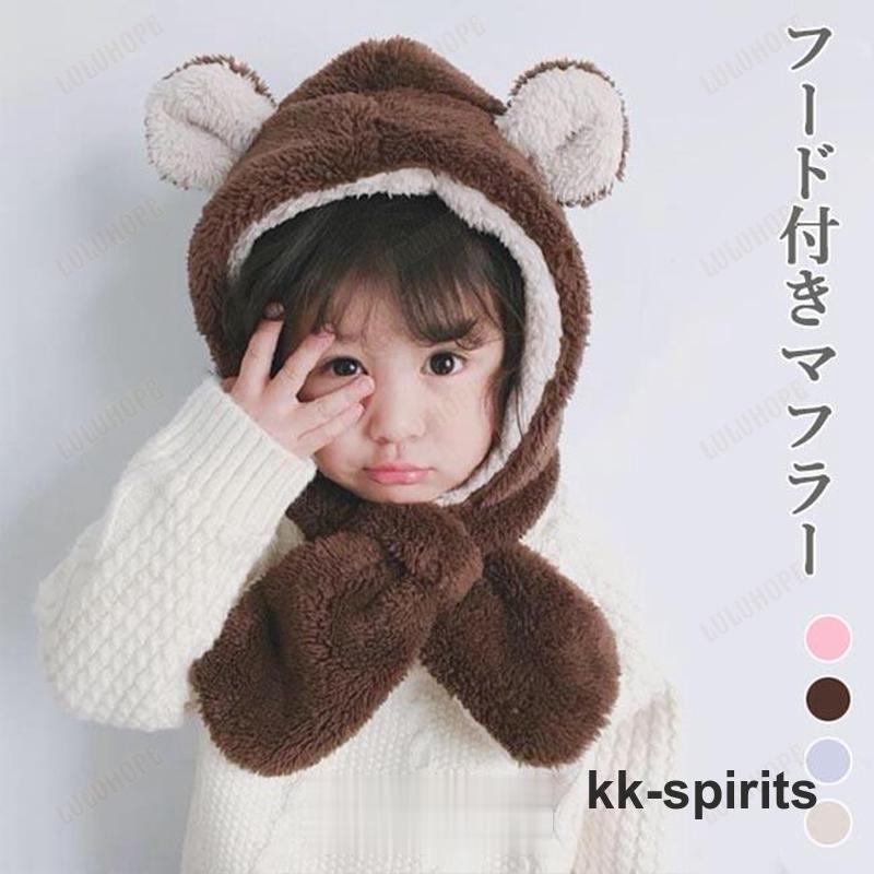 ファーマフラー 子供 フード付きマフラー 厚手 モコモコ ジュニア 女児 帽子 クマ耳 キッズ 防寒 ネックウォーマー さしこみマフラー 男児 冬