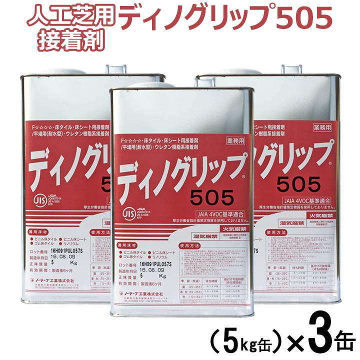 人工芝 接着剤 ジョイント 人工芝専用接着剤 ディノグリップ505 (5kg缶)×3缶 約18〜21平米施工可能 人工芝 施工設置用 人工芝接着 人工芝ジョイント 副資材