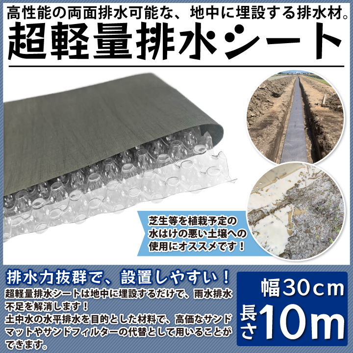 土壌改良材 方法 土壌改良剤 種類 超軽量排水シート 幅30cm お庭 グラウンド 水平排水 水はけ シート 改善 雨水 角