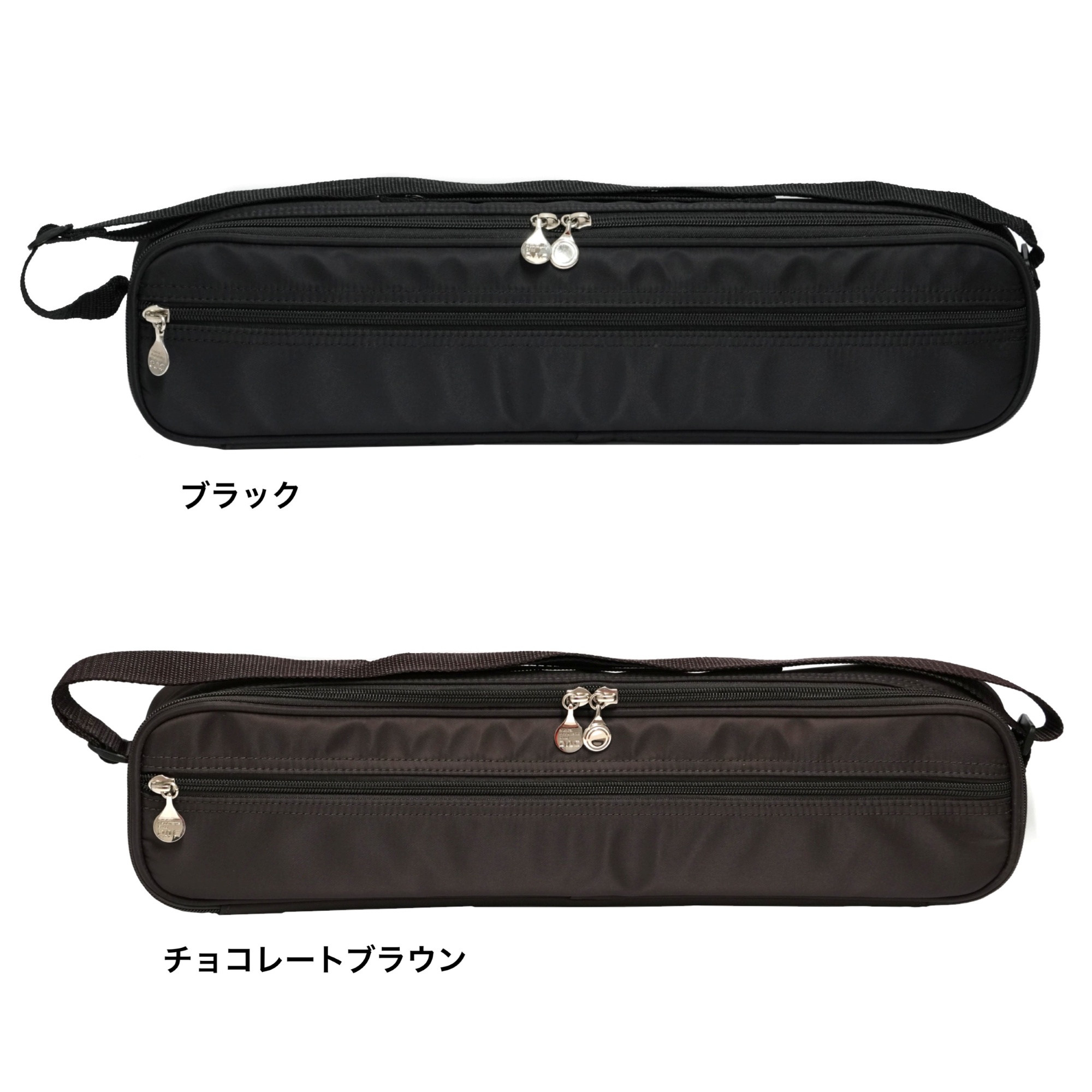 ファスナー部分には、フルートのキーの形をしたチャームが付いています。