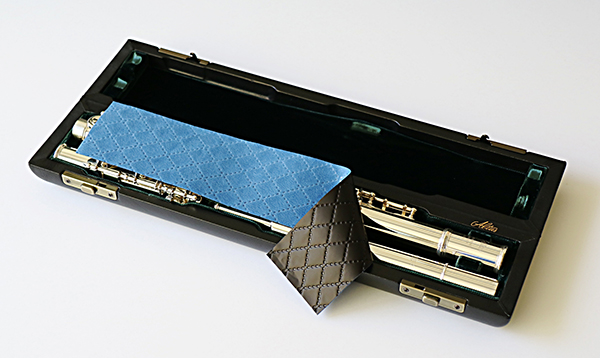 銀製の楽器は使用していると、空気中の硫黄成分と反応し硫化して変色していきます。この布は、ケース内の楽器の上にかぶせるだけで、楽器の変色をおさえてくれます。