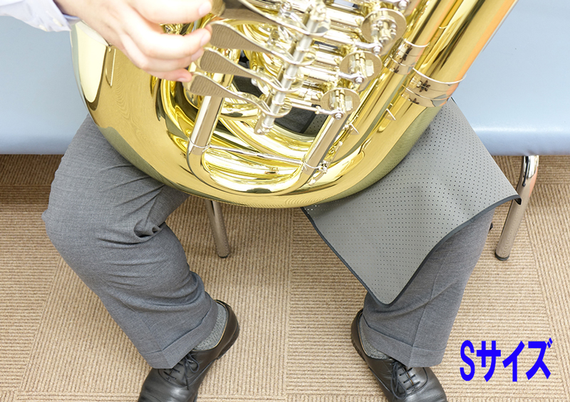 チューバを演奏する際、ひざに敷いて使用するすべりどめシートのSサイズ。