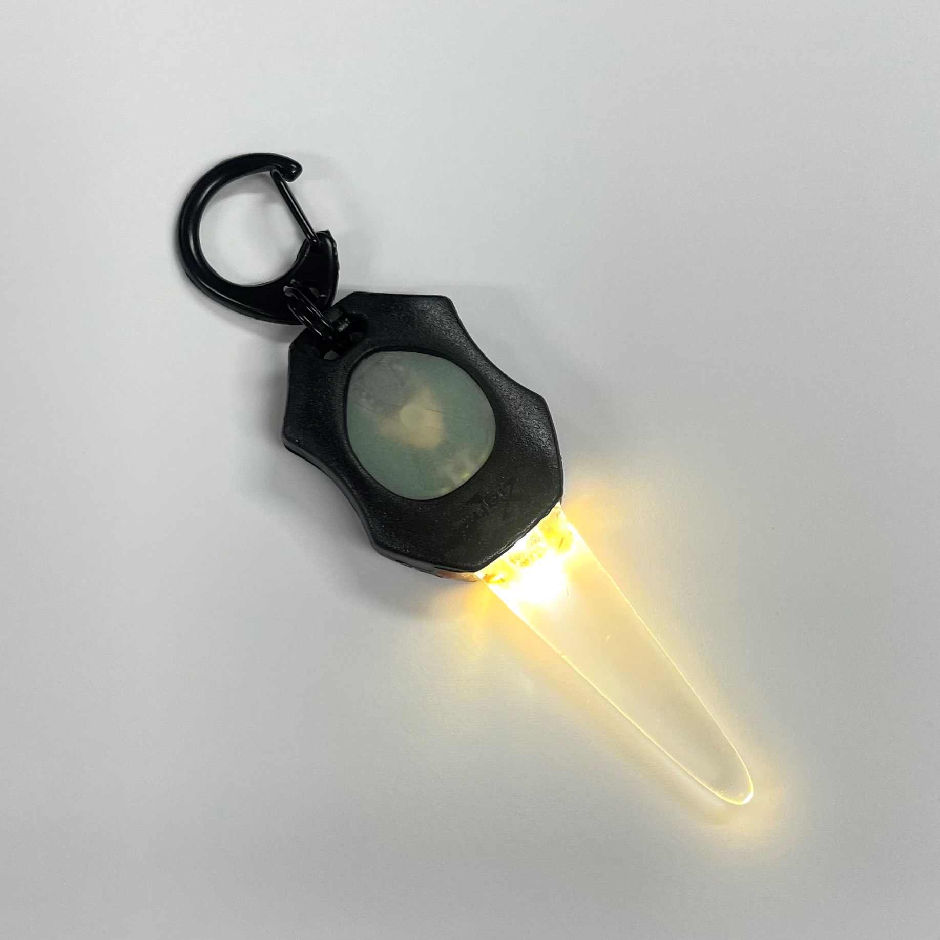 キーリングの輪を取り外し、端近くにある小さな切り込みを見つけます。ライト本体と電池キャップの間のこの切り込みに小さな先の尖った物を慎重に挿入して、電池キャップを外し電池を交換してください。