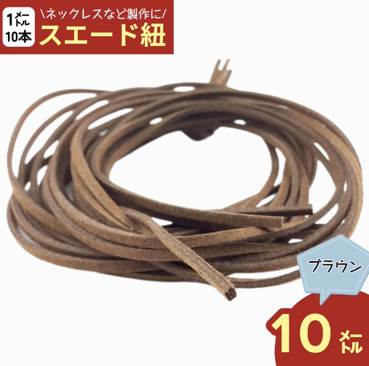 スエード 紐 1m 10本 ブラウン 茶色 革ひも 革ヒモ 革紐 チョーカー ネックレス パーツ ハンドメイド 手芸用 (AP0228)