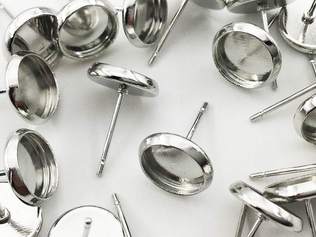 ミール皿 付き ピアス シルバー 20個 8mm セッティング 台座 付き ピアス パーツ 金具 AP0543