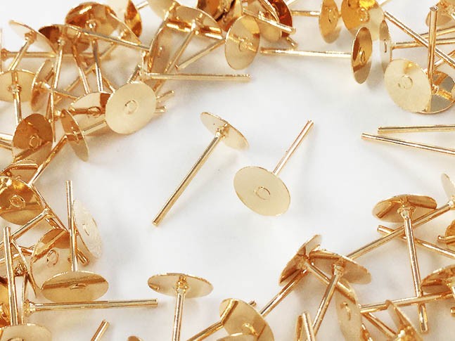 ピアスパーツ ゴールド KC金 100個 6mm 台座 平皿 丸皿 ピアス 金具 アクセサリー パーツ (AP0624)