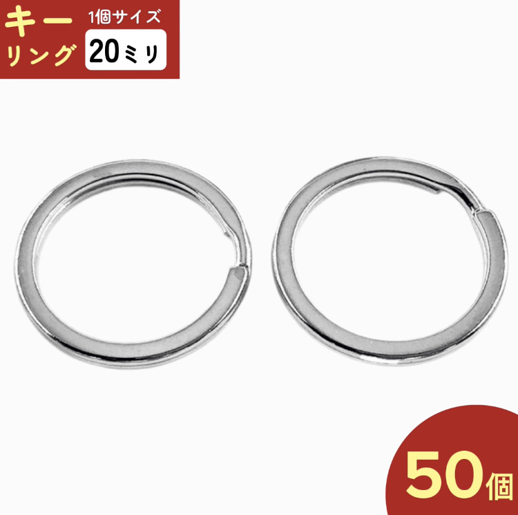 平キーリング 20mm シルバー 50個 二重リング キーホルダー ストラップ パーツ 金具 AP1054