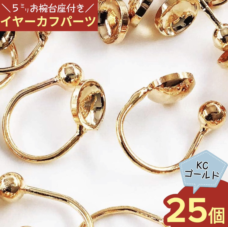 イヤリング パーツ イヤーカフ 5mmお椀型台座付き 25個 ゴールド KC金 イヤカフ アクセサリー 金具 AP1058