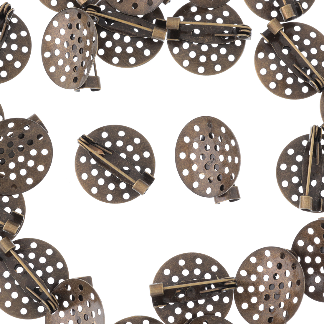 ブローチ 金具 シャワー台座付き 20個 金古美 ブローチピン パーツ セッティング台座 ハンドメイドパーツ アクセサリーパーツ