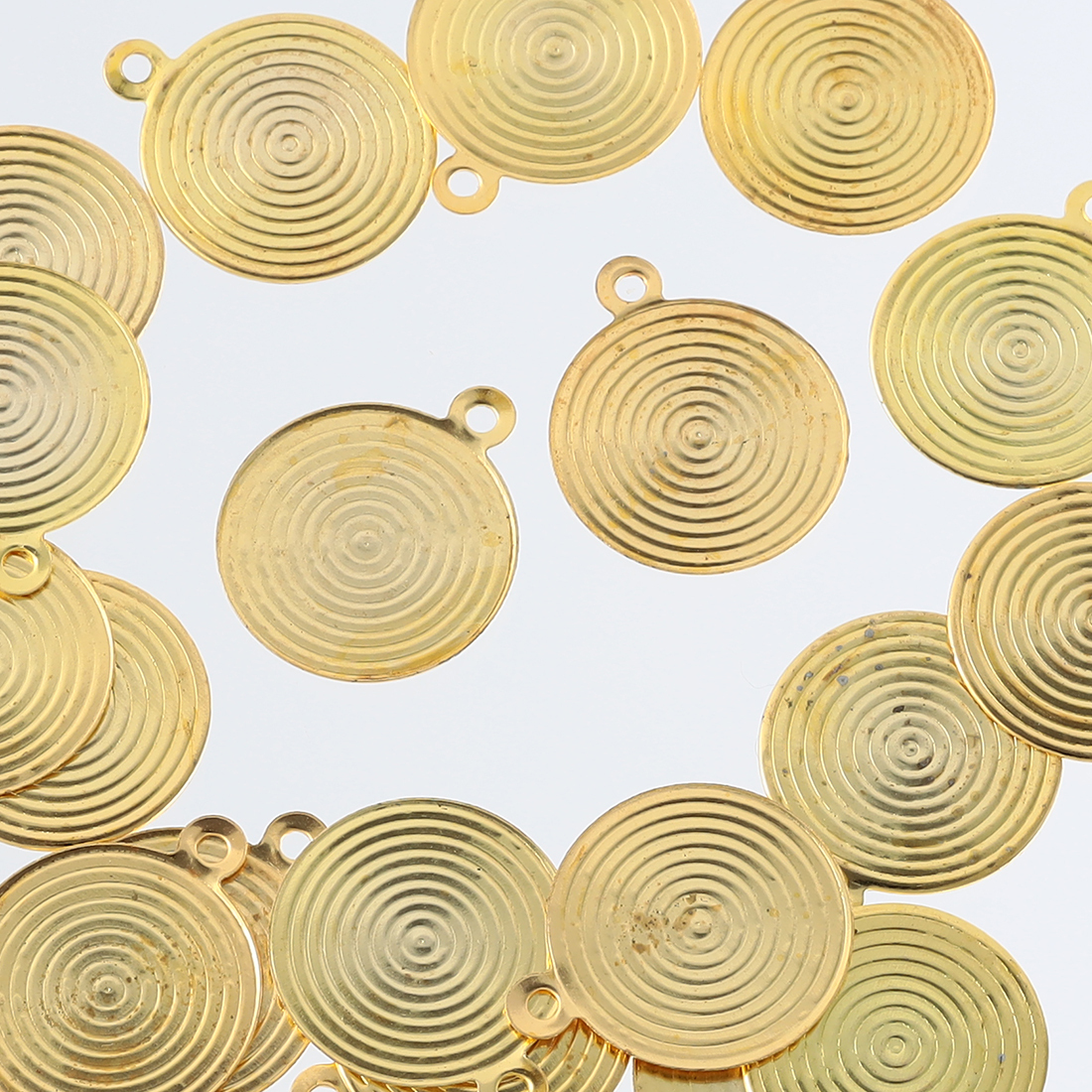 メタルパーツ プレート 丸 ゴールド 模様有 15mm 20個 カン付き チャーム ラウンド アクセサリー 金具 AP2208