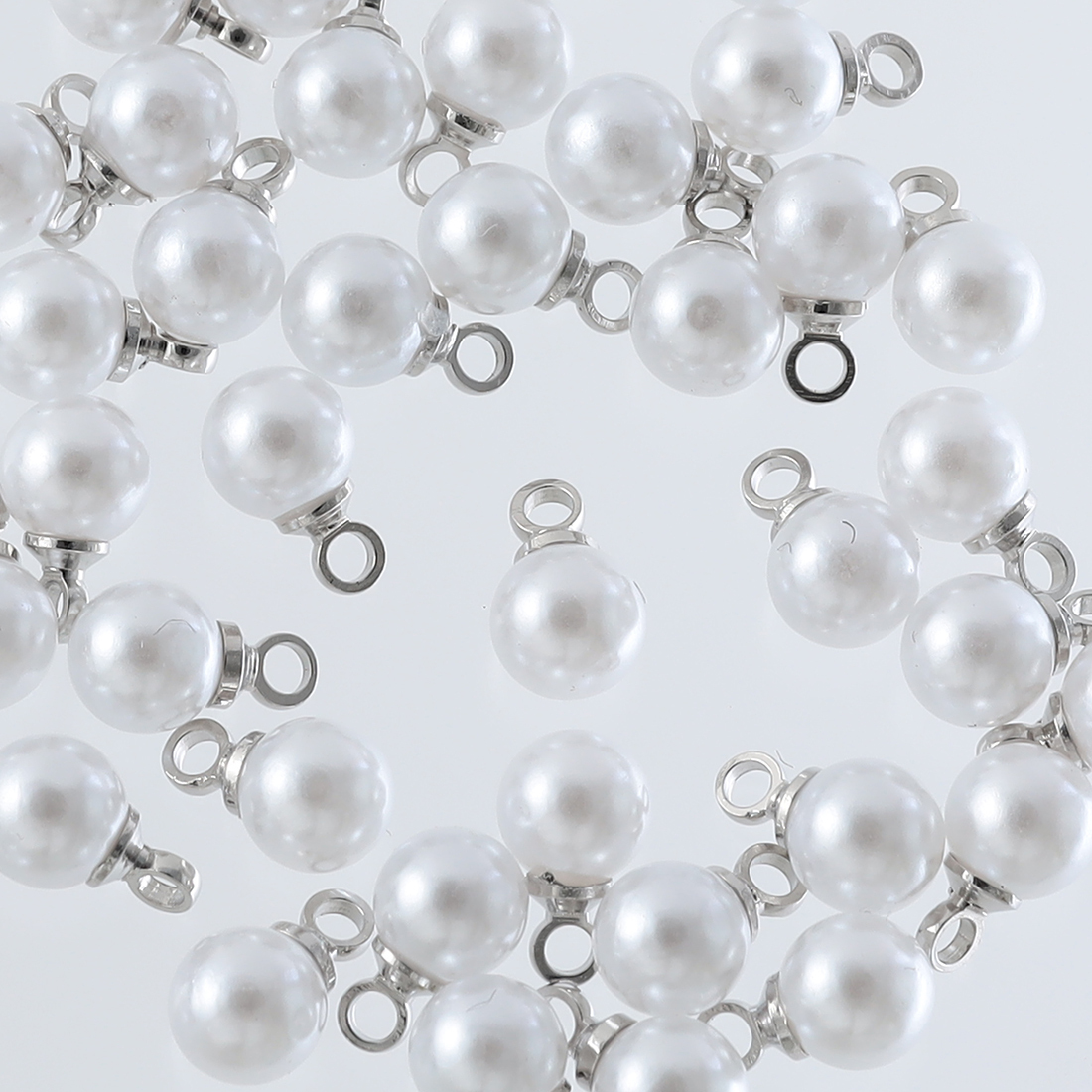 パールチャーム プラ製 丸 5mm 40個 カン付き ホワイト 金具シルバー ハンドメイド アクセサリー パーツ AP2234