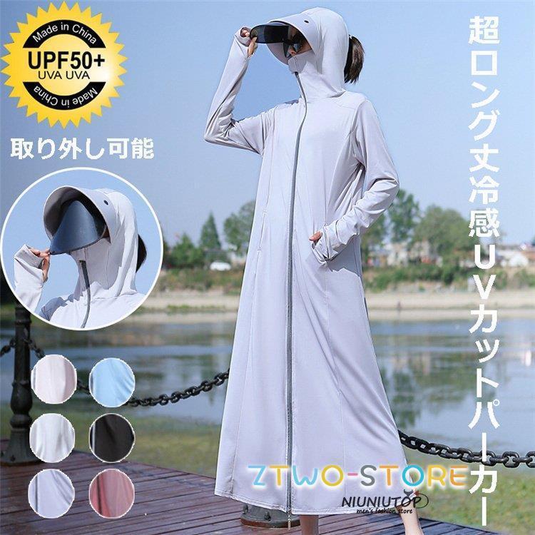 ラッシュガード 夏 レディース 長袖 UVカットパーカー 日焼け防止 冷感 ロング アウター 薄手 膝丈 涼しい 自転車 フード付き 紫外線対策