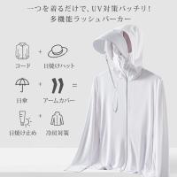 !ラッシュガード パーカー 接触冷感素材 -5℃ レディース 長袖 アウター UV カット 指穴 つば取り外し あご紐 エアリズム 吸水速乾