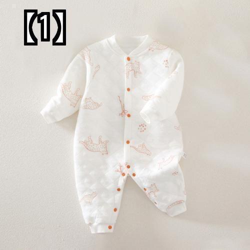 ベビー ロンパース 秋冬 三層 薄手 コットン 暖かい 男の子 女の子 カバーオール オープン クロッチ 赤 ライトグレー
