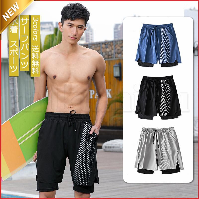 水着 メンズ 競泳 2層 速乾 海パン ボードショーツ 水泳 フィットネス 練習用 短パン 夏 スイムウェア ウエストゴム 膝上 インナーパンツ