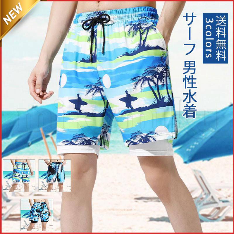 水着 メンズ 大きいサイズ 競泳 2層 速乾 海パン 水泳パンツ フィットネス 練習用 ボードショーツ スイムウェア 柄 膝上夏 スポーツ