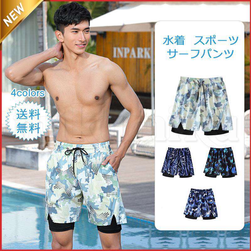 水着 メンズ 競泳 2層 速乾 海パン 水泳パンツ フィットネス 練習用 ボードショーツ スイムウェア 迷彩柄 膝上 インナーパンツ 短パン 夏