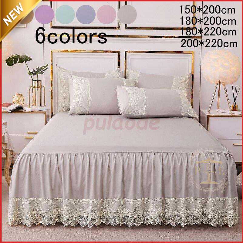 ベッドスカート レース 姫系 柔らかい ベッド用品 寝具 可愛い 枕カバー シーツカバー ベッドカバー 無地 北欧風 四季通用 ベッドスプレッド