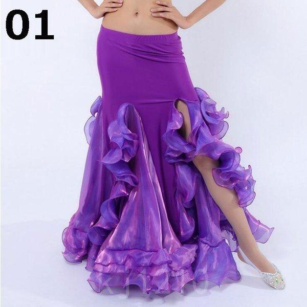 ベリーダンス衣装レディースレッスン着ロングスカートステージ衣装練習着舞台衣装ダンスウェアフリル9色フリー