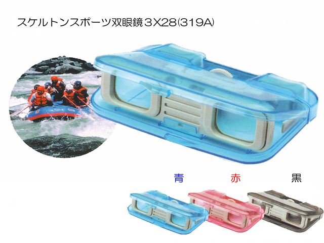 スケルトン スポーツ 双眼鏡 3X28 (319A) 色: 赤 青 黒 3倍率 3倍 コンパクト オペラグラス 小型 軽量 ミニ双眼鏡 販促品 ノベルティ 景品 粗品