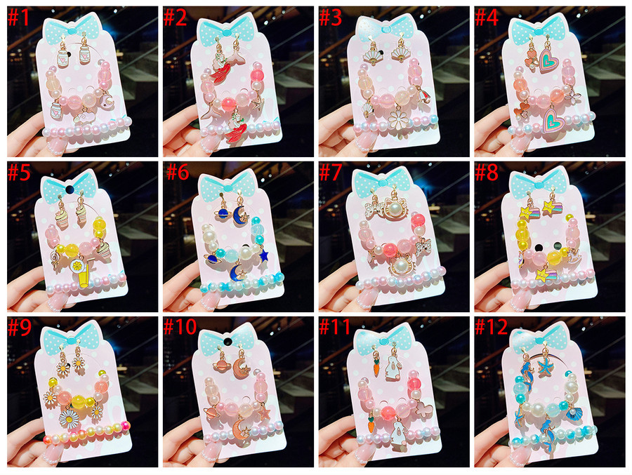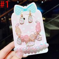 キッズアクセサリー キッズ ブレスレット キラキラピンクのブレスレットとイヤリングセット キャラクター付き ピンクビーズブレスレット