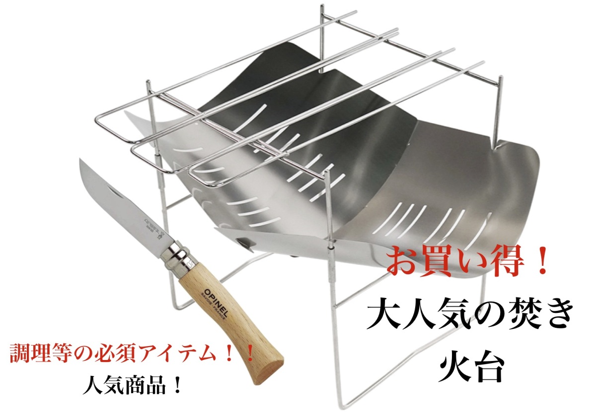 大人気の焚き火台とOPINEL#9のセットです!A4サイズなのでとてもコンパクトです!収納時も収納ケース付で450gと持ち運びがとても楽です!【商品仕様】本体重量:380g素材:ステンレス使用時サイズ:約39×25×25cm収納時サイズ:約23.5×35×1.5cm【セット内容】収納時重量 :約540g■焚き火板2枚 重量:約165g■折りたたみ式フレーム 重量:約215g■スピット(大) 重量:約40g×2■スピット(小) 重量:約38g×1■収納ケース 重量:約40g※ご使用後のお掃除は、火傷に注意して下さい!完全に冷えた状態もしくは、水で一度冷やした状態で洗って下さい。焚き火板が0.2mmと薄い構造となっておりますので、熱を持ち変形致しますのでご注意下さい。ナイフ【ブランド】OPINEL/オピネル 【サイズ】(使用時) 幅2.5×長さ21cm (収納時) 長さ12cm【刃渡り】9cm 【素材】ブレード:ステンレススチール ハンドル:ブナ材で、色味や木目など多少の個体差があります。【原産国】 フランス 並行輸入品正当な理由なくこの商品を携帯することは法令により禁止されております。18歳未満の方はこの商品を購入しないようお願いします。