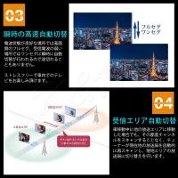 また4つのアンテナであらゆる方向からの電波を捉える事ができ、受信エリアも広範囲なので、安定した鮮明なフルセグ映像をご覧頂けます。