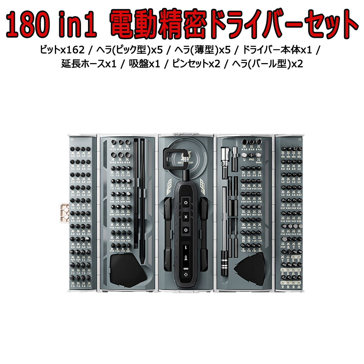 JAKEMY 180in1 電動精密ドライバーセット 特殊ドライバー 磁気ボックスタグ 磁石付き ネジ回し 修理キット 多機能ツールキット スマホ タブレット 腕時計 1ヶ月保証