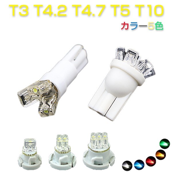 メーター球、インジケーター、エアコンパネル LED T3 T4.2 T4.7 T5 T10 5色 2個セット 1ヶ月保証
