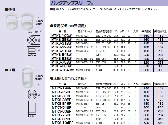 未来工業 MTKS-19BW 1組 バックアップスリーブ 壁用 [MR07726]