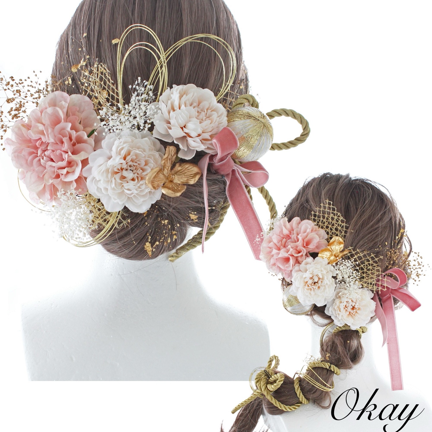 成人式 卒業式 結婚式 七五三 前撮り 袴 振袖 ウェディング かすみ草 ドライフラワー 金箔 水引 パール