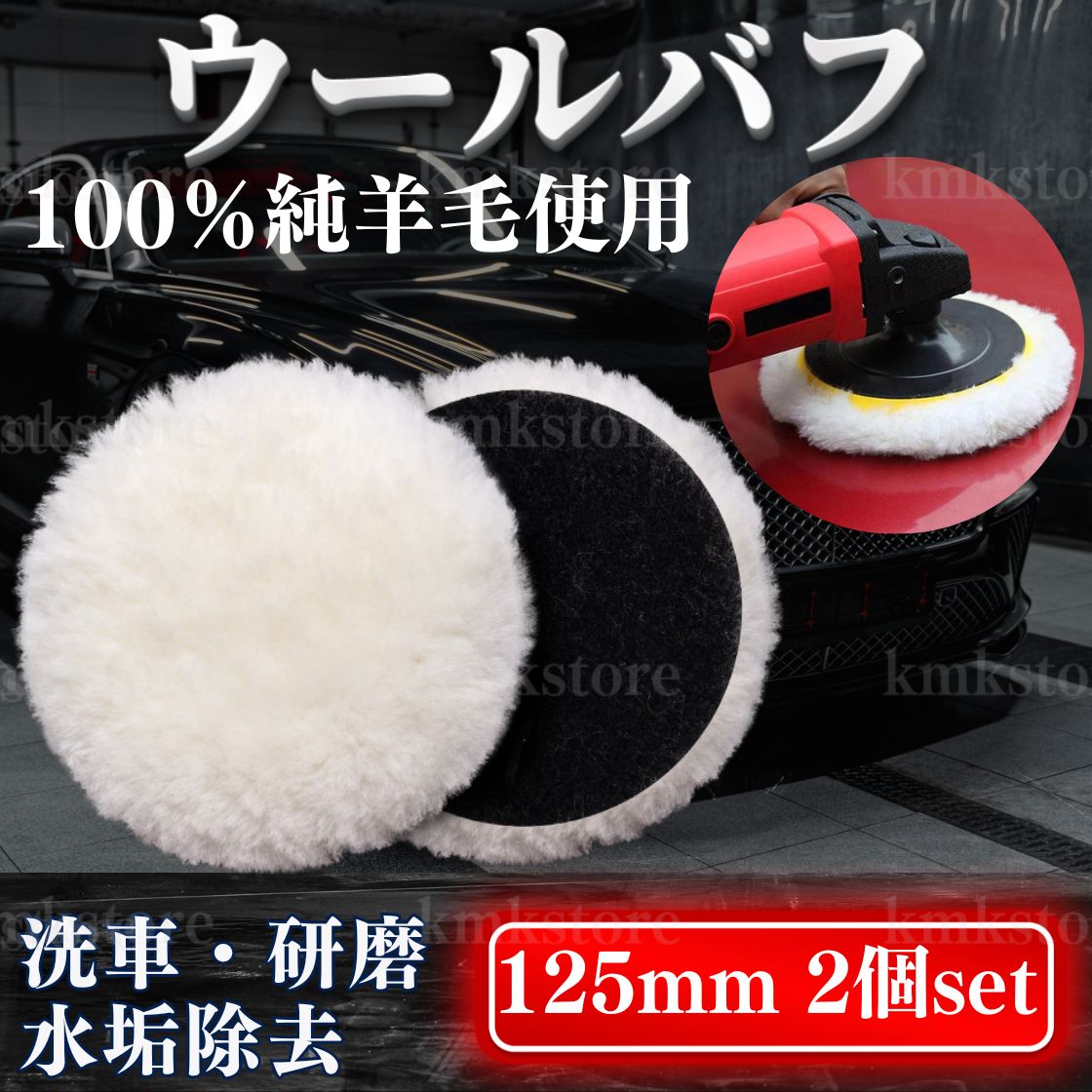 商品名:ウールバフ 羊毛バフ 電動ポリッシャー 125mm 2個セット 洗車 研磨 塗装 傷 コーティング コンパウンド ワックス 水垢 カー用品 車用品